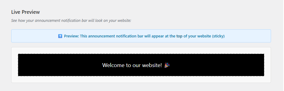 - Visit your website to see the announcement notification bar in action!